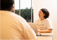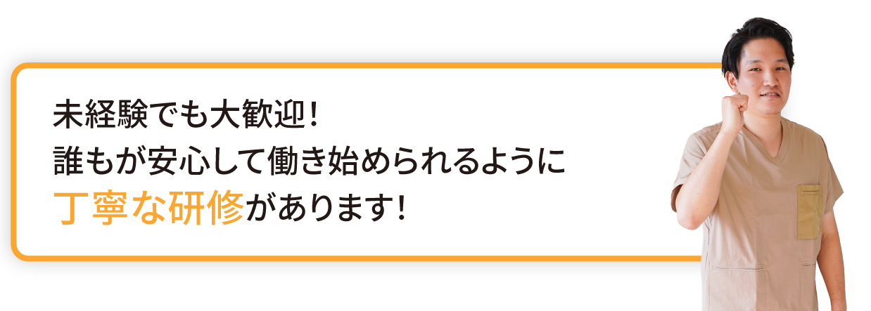 オリエンテーション→OJT(職場内訓練)→現場デビューと、きちんと段階を踏んで学べるから、自信を持って現場に立つことができます。